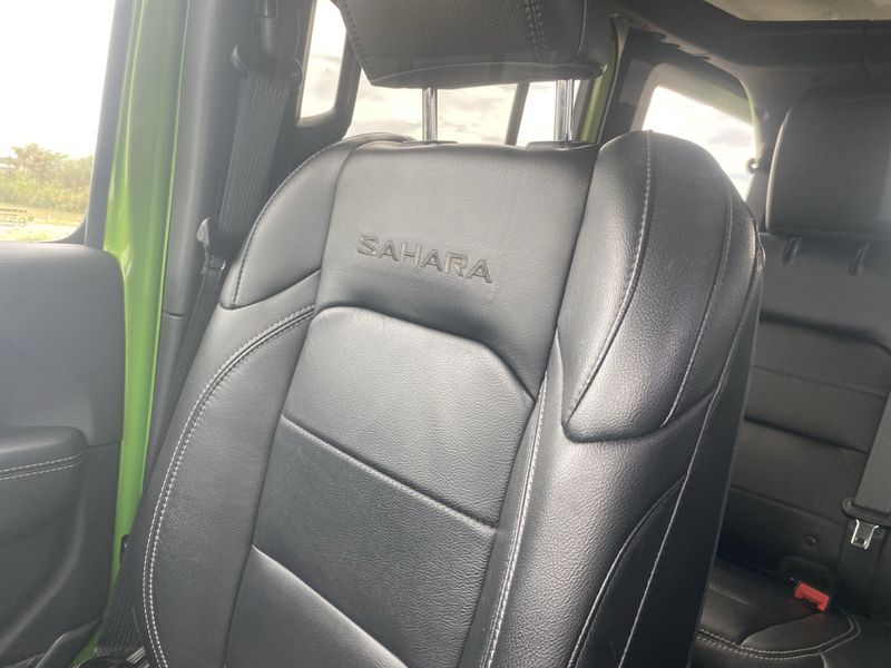 • BLACK LEATHER TRIMMED SEATS W/SAHARA LOGO -inc: Premium Wrapped I/P Bezels #1 Seat Foam Cushion Leather Wrapped Park Brake Handle Leather Wrapped Shift Knob