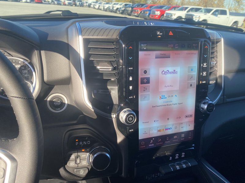 • BIG HORN LEVEL 2 EQUIPMENT GROUP -inc: SiriusXM Radio Service Power Adjustable Pedals Leather Wrapped Steering Wheel 12 Touchscreen Display Glove Box Lamp Auto Power-Folding Mirrors 115V Auxiliary Rear Power Outlet Media Hub w/2 Charge Only USBs Heated Front Seats Security Alarm Black Premium Power Mirrors Premium Overhead Console 9 Amplified Speakers w/Subwoofer Disassociated Touchscreen Display Body Color Fender Flares Remote Tailgate Release 115V Auxiliary Power Outlet LED Dome Lamp w/On/Off Switch Universal Garage Door Opener 2nd Row In Floor Storage Bins Sun Visors w/Illuminated Vanity Mirrors LED Footwell Lighting Rear Window Defroster Rear View Auto Dim Mirror Rear Power Sliding Window GPS Navigation Overhead LED Lamps Wheels: 20 x 9 Aluminum Chrome Clad (WRK) Tires: 275/55R20 OWL All Season Bridgestone Brand Tires Auto Dim Exterior Driver Mirror SiriusXM w/360L Connected Travel & Traffic Services Heated Steering Wheel Configurable Drive Mod